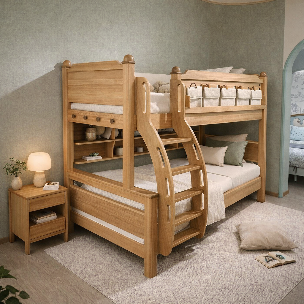 Bed: L 200cm x W 120cm x H 200cm – Bedside: W 45cm × D 40cm× H 50cm